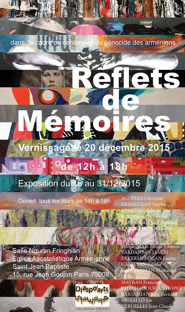 Une exposition collective, avec le collectif d'artistes arméniens DIASPO'ARTS, du 18 au 31 décembre 2015 à l'église Apostolique arménienne Saint Jean Baptiste, (15 rue Jean Goujon, Paris 75008).